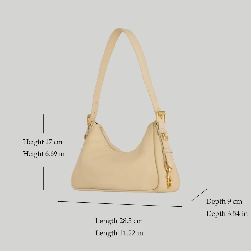 Design: Features a classic half-moon silhouette with a gentle top curve that sits comfortably under the arm or on the shoulder. Equipped with an adjustable buckle strap for a customized fit.