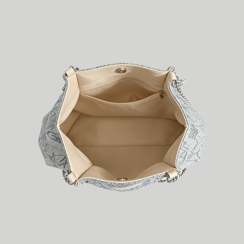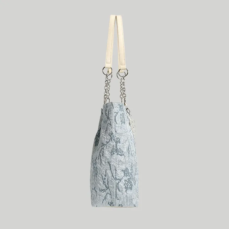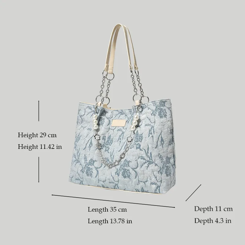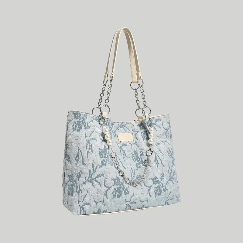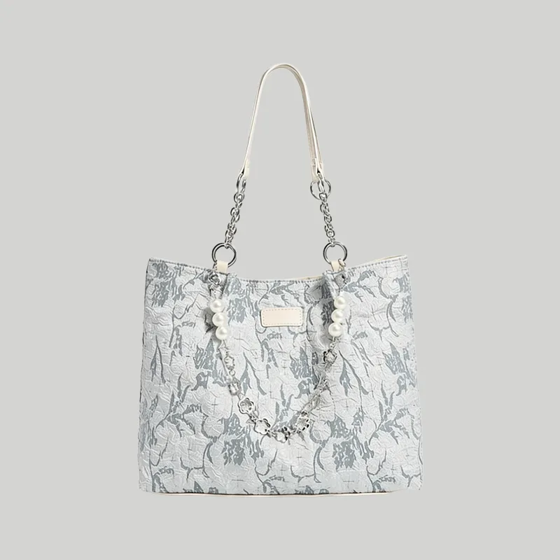 Introduce a touch of romantic elegance to your collection with our Floral Embossed Leather Tote Bag. Beautifully capturing the essence of “Chinoiserie chic,” this exquisite handbag features a delicate, textured floral pattern elevated by a stunning pearl and metal flower chain strap. Beyond its captivating aesthetic, it functions as a highly practical everyday tote. The spacious, multi-compartment interior ensures seamless organization, making it the perfect statement piece for elegant commutes, weekend teas, or romantic getaways.
